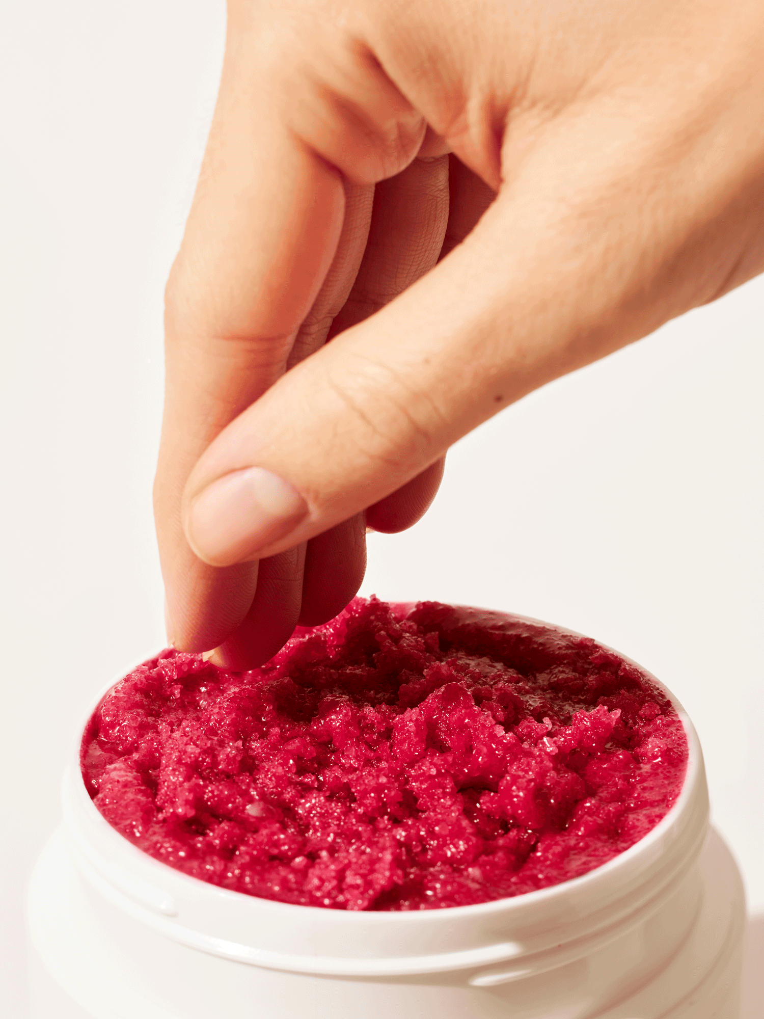 Sodium Chloride, Cocos Nucifera Oil, Caprylic/Capric Triglyceride, Hydrogenated Jojoba Oil, Parfum (natural), Tocopheryl Acetate, Rosa Canina Seed Oil*, Talc, Ascorbyl Palmitate, CI 73360, CI 75470.